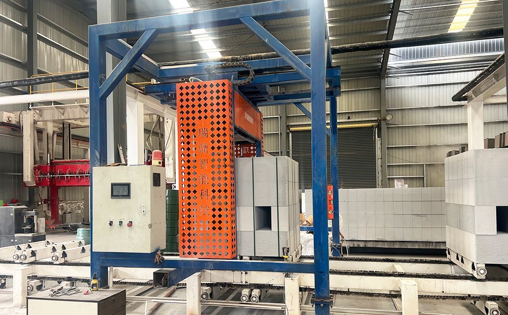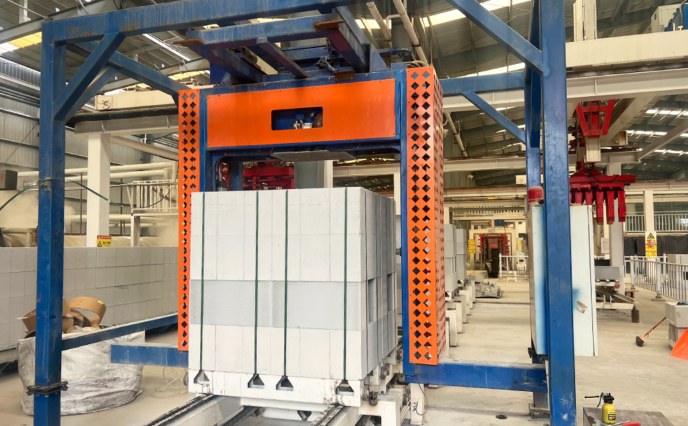 Недавно безподдонная обвязочная линия, поставленная компанией Qingzhou Shuangfengda Mechanical Engineering Co., Ltd., прошла монтаж и пусконаладку на заводе газобетонных блоков в уезде Миньсянь и официально введена в эксплуатацию. Оборудование использует обвязку с протяжкой ленты (сквозную обвязку) для полностью автоматизированной фиксации штабелей газобетонных блоков. Весь процесс не требует ручного труда и исключает использование деревянных поддонов.